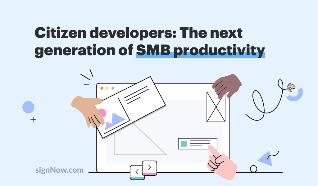 Productivity Citizen developers: the next generation of SMB productivity Low code/no-code solutions for software development are nothing new. According to a 2020 article by Gartner research, low-code application platforms will account for 65% of all app development by ... Productivity The ultimate contract management automation guide: How to streamline your contract management workflow In 2020, paper-based routines for handling contracts have proven time-consuming and inefficient. A 2019 Benchmark Report by the IACCM suggests that modern, more complex contracts, have an average duration ... Productivity Emboss official company documents electronically to verify their authenticity Many organizations prefer to stamp their company seal on items such as contracts, ownership certificates, and company resolutions. With the signNow Stamp Field feature, you can easily ensure the ... Productivity Academic year 2020-2021: remote education and the key things you should consider The new academic year has started but there is still no common strategy to define whether to educate students remotely, bring them back into the classroom, or create a ... Productivity Remote work is our new normal: tips on how to successfully hire remote workers As the world faces new challenges businesses have to adapt to constantly changing conditions, for example, remote work. It’s relatively new and only recently was it introduced as a ... Productivity Five reasons e-signatures are no longer a choice but a necessity While e-signing isn’t something new or revolutionary, only 1 in 5 businesses today close deals using paperless solutions. You may be thinking, “Yea, and I’m fine with being in ...